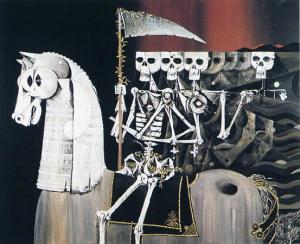- El Malecón nos ha proporcionado a mi amigo Humberto y a mí una guadaña para que cortemos cabezas y hagamos una escultura con ellas. La hicimos pero con las nuestras una vez disecadas. Se parecía a un centauro capado y ciego recitando el Estado soy yo.