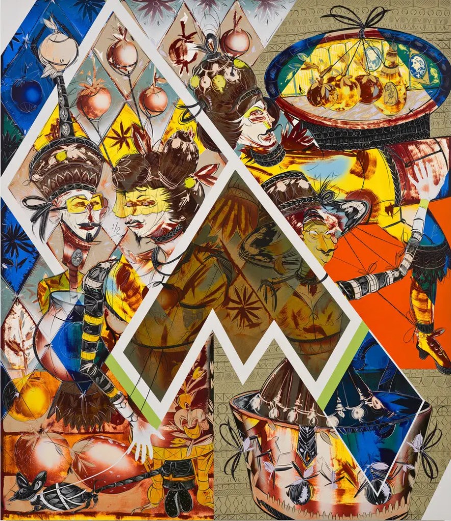 Toda la piel es negra pero el ritual exige el blanco en los rostros, que son significados de creencias de fusión con las fantasmales visiones que reivindican y enardecen una naturaleza identitaria.