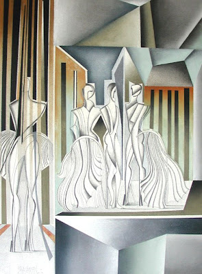 En la primera muestra anida un concepto plástico por el cual la imagen, la representación, no vale por sí misma, porque no es completa, porque le faltan los rasgos vibrantes que él introduce, de tal forma que esa esquematización a partir de una gama cromática simbólica pueda transformarla hasta llegar a ser como la que propone, como en realidad debería ser bajo otros patrones más estéticos. El objeto pasa a ser trasfondo y el emblema (rojo, blanco y negro) el objeto, y la construcción una alegoría del poder.