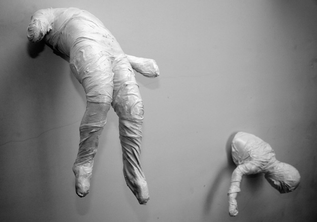 El alambre es un elemento que al hacerse cuerpo, moldearse en ser, ya es orgánico y está vivo. Es el reflejo de un ente que somos nosotros, espectadores, o es la forma con la que nos convertimos en fantasmas alegóricos.