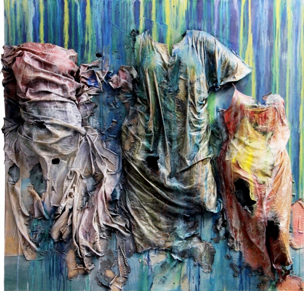 La espontaneidad, los trazos, la densidad, la saturación, los vertidos, se suceden unos detrás de otros, sugiriendo, perfilando, silueteando, confrontando, capa tras capa, mancha tras mancha, verificando que no hay otro propósitoque salir de la oscuridad, volver a la luz, fragmentarse y rasgarse, siguiendo los innumerables derroteros por lo que transcurre su savia.