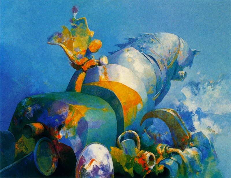 Para el segoviano TARDÓN, en un quehacer que desde la sabiduría técnica cuaja en un configuración entreverada entre lo plástico y lo imaginativo, en un pensamiento que piensa en sí mismo como pintura y fantasía.