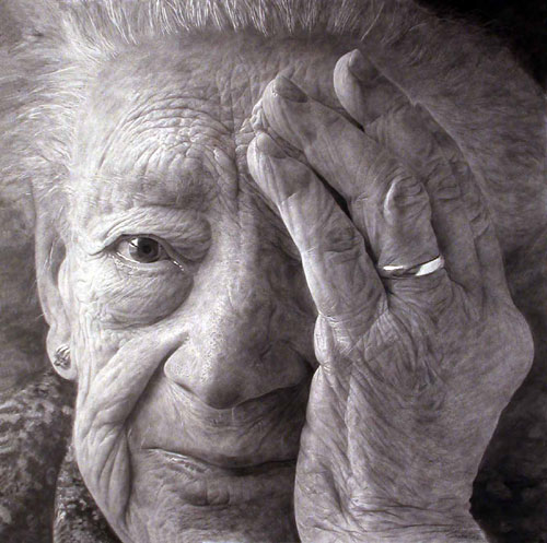 La magnitud de sus retratos únicamente tiene que excavar en la piel para que la densidad humana alcance no solamente su máxima expresión sino un relato de existencias al borde de sí mismas.